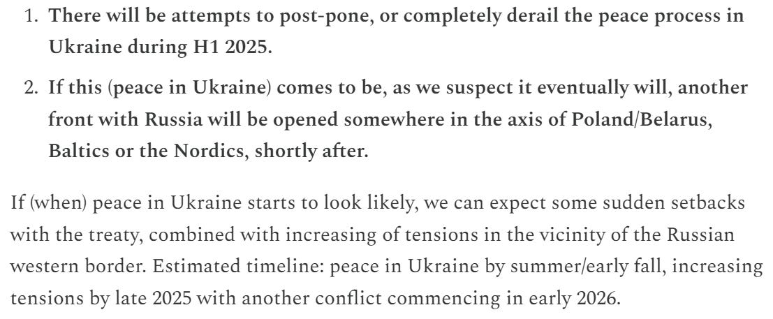 We can now conclude that our somewhat optimistic timeline for peace did not come to be. This is mostly because Presidents Trump and Putin were unable to seize the momentum reached in Anchorage. The jury is still out for the pessimistic part (another conflict), but at current time it also looks to fail also (which would be most welcome).